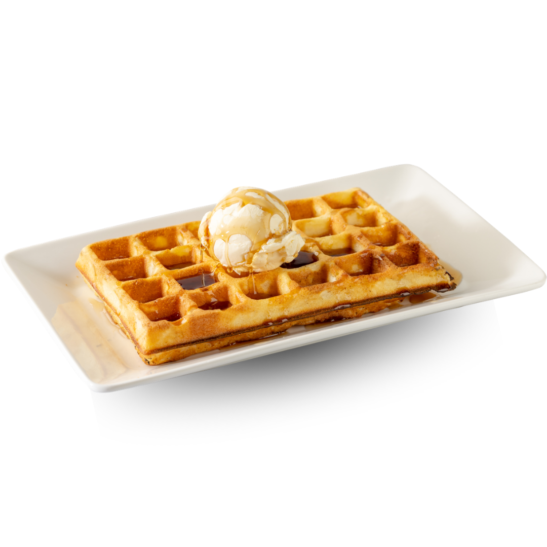 Our original golden-brown waffle topped with scoop of ice cream.